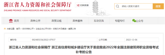 關于重啟我省2022年全國注冊建筑師職業資格考試補考的公告