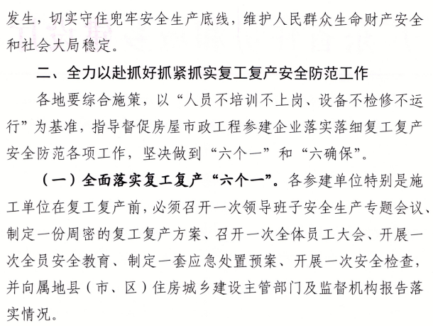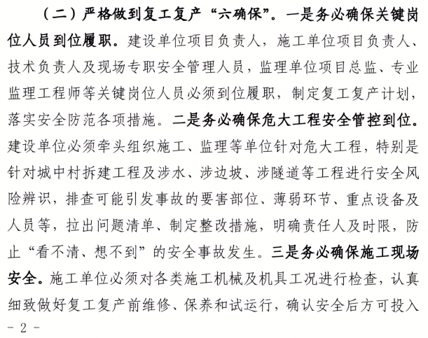 (二)嚴格做到復工復產“六確保”。