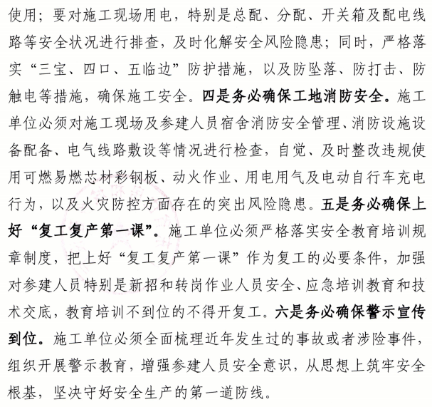 各參建單位特別是施工單位在復工復產前,必須