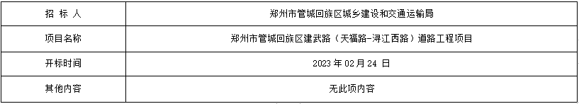 經招標人確定,現將該項目鄭州市管城回族區建武路(天福路-潯江西路)道路工程項目(標段編號:22-GC-1248-01)的中標結果公告如下: